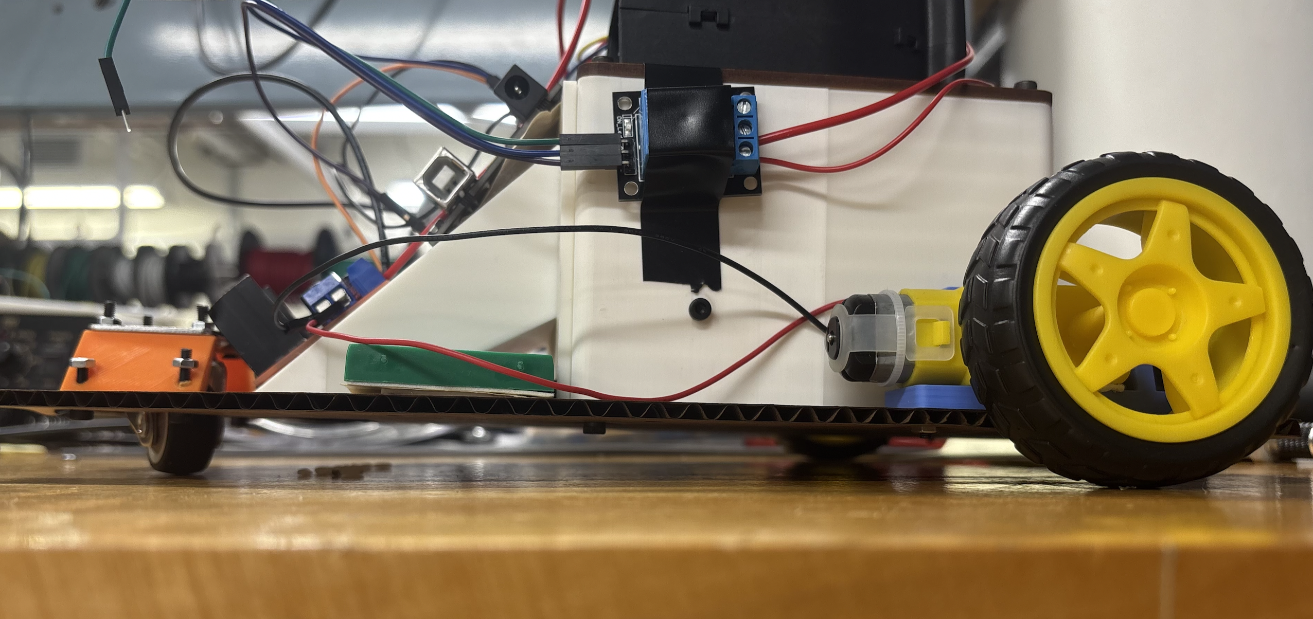 - Electronics: Ultrasonic sensors, motor driver, relay, LEDs, buzzer