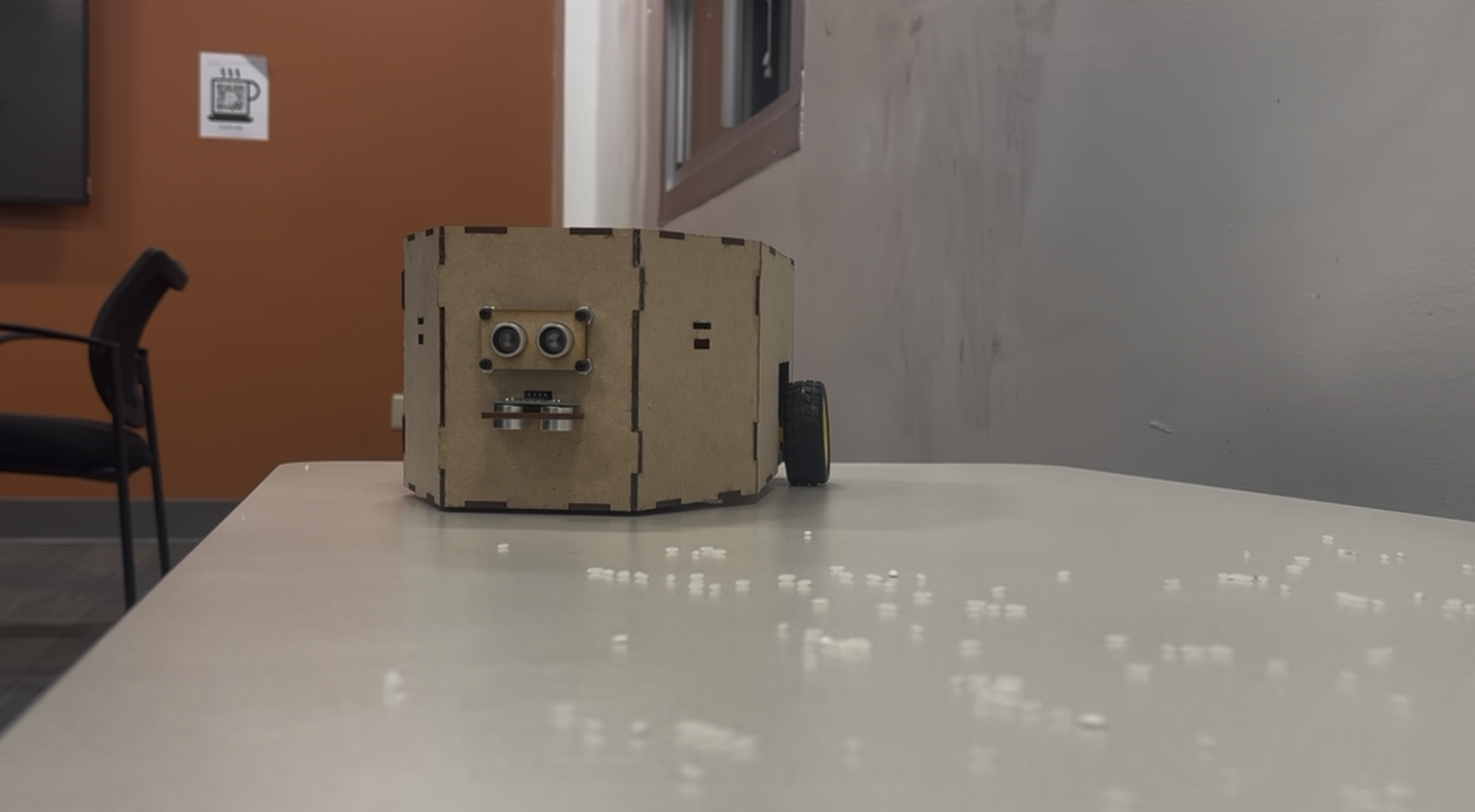 - Obstacle avoidance and desk-edge detection using ultrasonic sensors