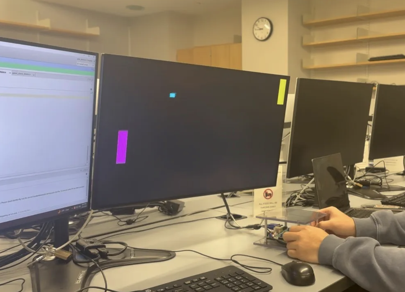 A hardware implementation of the classic Pong game built entirely in Verilog and deployed on FPGA. The system outputs real-time VGA graphics, reads paddle input from onboard switches, and updates game state in hardware using simple collision logic and finite-state machines.